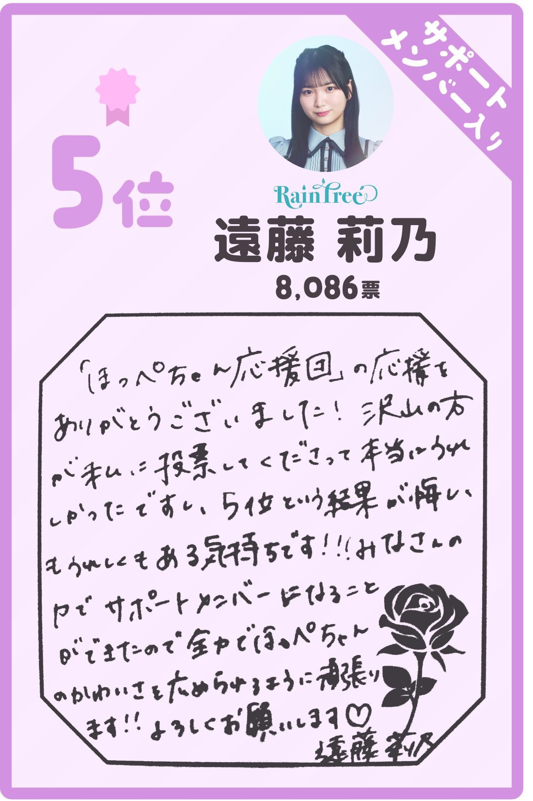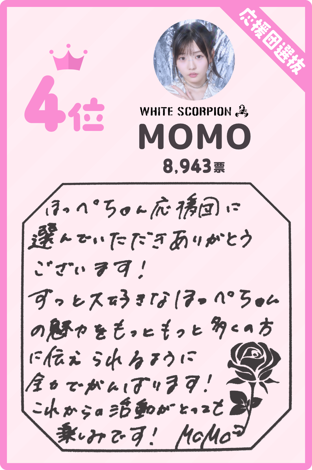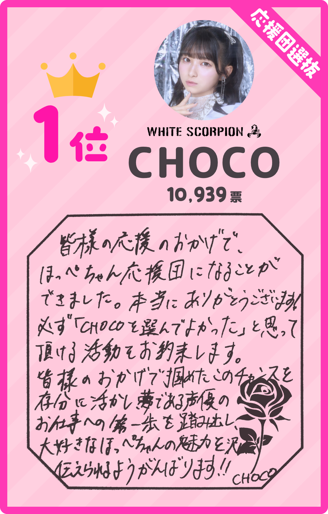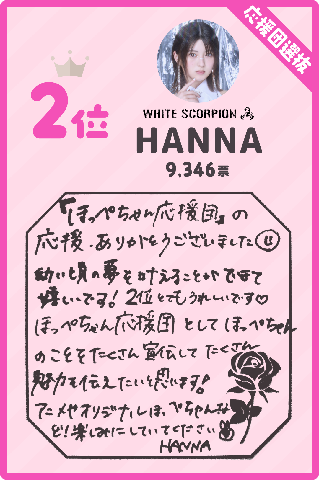 WHITE SCORPION、Rain Treeから選ばれたほっぺちゃんファンの代表各7名、合計14名の中からNIDT保有者の投票により、
